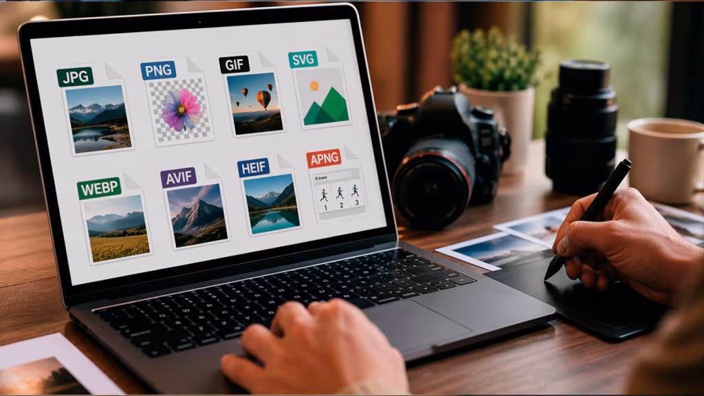 JPG suele ser la opción más habitual para fotografías cuando lo importante es reducir el tamaño del archivo. PNG gana terreno cuando la prioridad es conservar nitidez y usar transparencia. SVG resulta más apropiado para logos, íconos e ilustraciones escalables. GIF y APNG se usan cuando la imagen necesita movimiento, mientras que WebP, AVIF y HEIF apuntan a mejorar la relación entre calidad y peso del archivo.