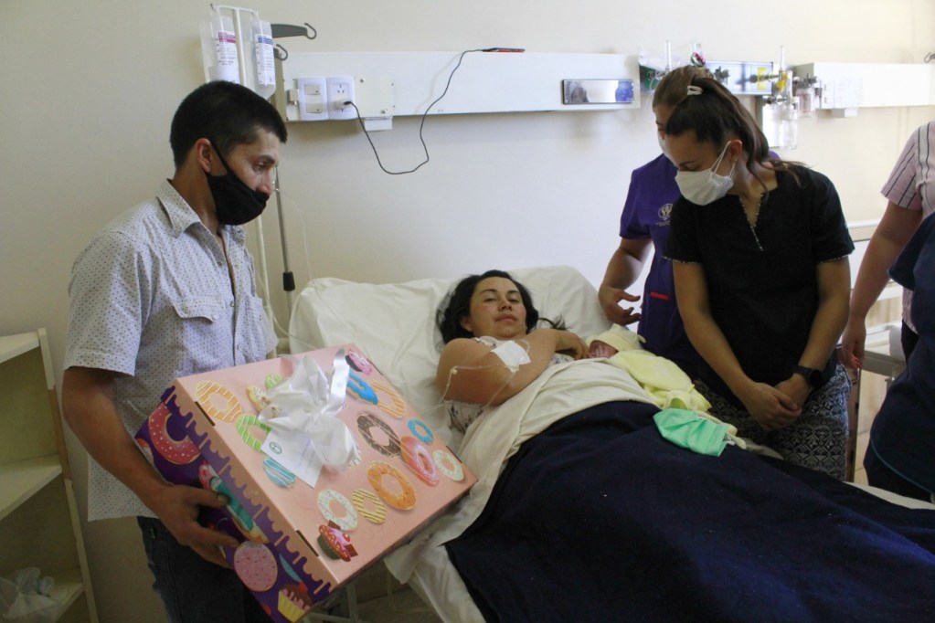 Dante también recibió el obsequio de la Cooperadora del Hospital Schestakow, entidad que todos los años obsequia un ajuar a la primera niña y al primer niño nacidos en el nosocomio.
