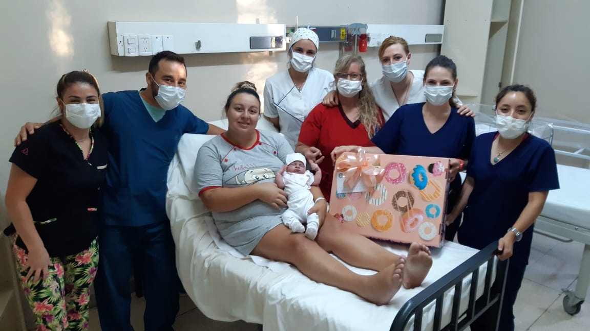 Fue recibida por un equipo de profesionales compuesto por Ariadna Assa Gómez, médica de Guardia; Antonella Martinez, médica residente de Guardia; Gabriela Shoening, obstetra; Cinthia Rodriguez, enfermera y Claudia Mesa, lic. En Enfermeria; del Servicio de Maternidad; por el Dr. Roberto Gómez Campanello y Tania Pelliciari, enfermera profesional del Servicio de Neonatologia.