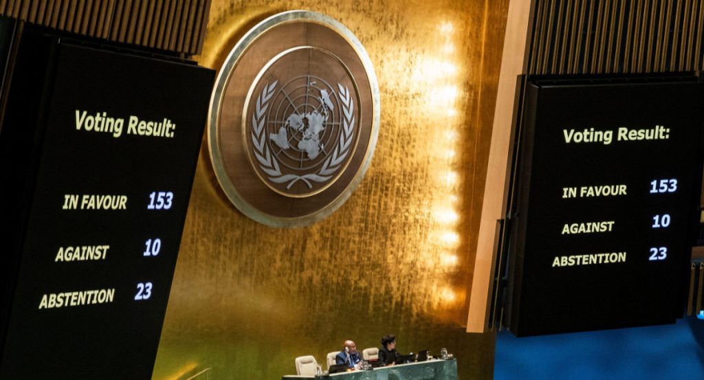 La Asamblea General de la ONU pidió por una amplia mayoría de 153 votos favorables, frente a 10 en contra y 23 abstenciones, «un alto el fuego humanitario inmediato» en Gaza, un resultado mucho más abultado que el cosechado el 28 de noviembre para pedir un cese de hostilidades.