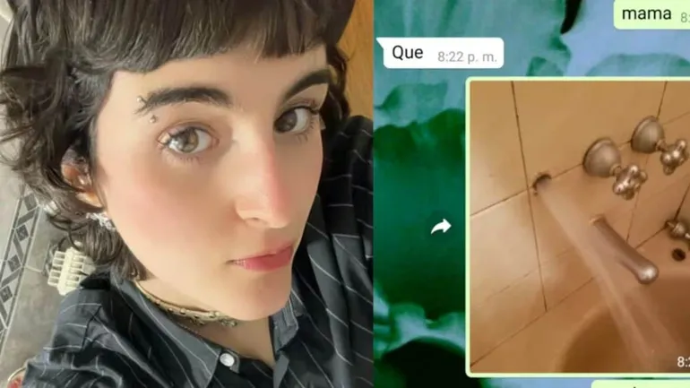 Todo comenzó como una situación cotidiana: la joven estaba a punto de bañarse cuando, de repente, una de las canillas del grifo se salió de su lugar y el agua empezó a salir con fuerza, empapando todo el baño. Entre la sorpresa y la desesperación, tomó el celular y le envió un mensaje a su mamá acompañado de una foto del caos: “¿Qué hago? Decime rápido porque se está mojando todo”, escribió.