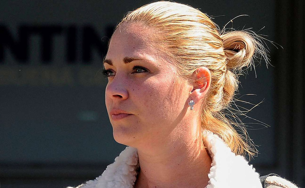 La cubana Mavys Álvarez, cuando declaró ante la justicia en Buenos Aires (Argentina), en el marco de una causa por presunta trata de personas relacionada con su relación con el fallecido exfutbolista. EFE/Juan Ignacio Roncoroni