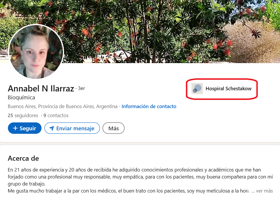 En la red social LinkedIn, Ilarraz —de 50 años— detalla que entre 2013 y 2022 se desempeñó en el Hospital Schestakow y en un supuesto “Laboratorio Bioquímico SRL” ubicado en San Rafael.