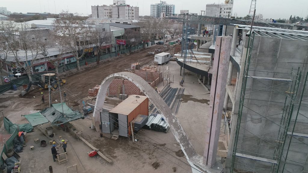 Como se advierte en las imágenes, los avances del futuro centro comercial, administrativo y cultural, son significativos, como así también los trabajos complementarios que se realizan en los alrededores al predio.
