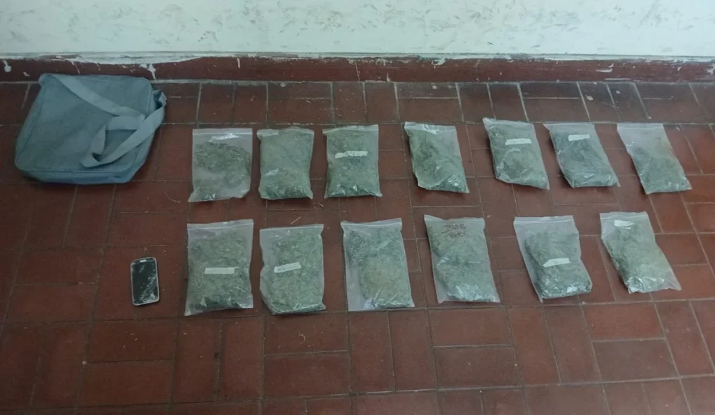 Durante la requisa posterior a la captura, los efectivos policiales secuestraron un morral que el sospechoso cargó durante su huida. En el interior del bolso encontraron veinte bolsas tipo ziploc que contenían una sustancia amarronada, con un peso estimado de 100 gramos cada una. Este hallazgo representó un cargamento total cercano a los dos kilogramos de material ilícito, el cual quedó a disposición de las autoridades judiciales correspondientes para su análisis definitivo.
