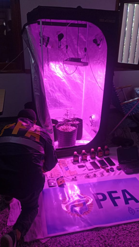 Con todo esto, la División UNIDAD OPERATIVA FEDERAL San Rafael, lo presentó ante la Fiscalía Federal de San Rafael, a cargo del Dr. Ignacio SABÁS, solicitando la orden de allanamiento de la vivienda investigada, quien a su vez le pidió que ordene la medida al Dr. PUIGDÉNDOLAS, titular del Juzgado Federal. Una vez que se contó con la orden de allanamiento, la Brigada de la POLICÍA FEDERAL, dio cumplimiento a la misma, logrando así detener a las personas investigadas. Al momento del allanamiento, el joven intentó resistirse, pero el rápido accionar policial se lo impidió. Se contó con el can detector de drogas “Aquiles”, quien facilitó la tarea de los uniformados encontrando una importante cantidad de envoltorios de marihuana fraccionados y listos para ser vendidos, también se secuestró una carpa armada para el cultivo de cannabis, de las denominadas “indoor”, la que había sido perfectamente acondicionada con luz halógena y sistema de ventilación con reguladores, contando en su interior con varias plantas de marihuana, entre otras cosas, también se secuestraron teléfonos celulares, balanzas y semillas de marihuana. Los “clientes” de la pareja investigada recuperaron su libertad luego de constatarse que no tenían impedimentos restrictivos de libertad, en tanto que los “dealers” continúan detenido en la sede policial a disposición de la Justicia Federal.
