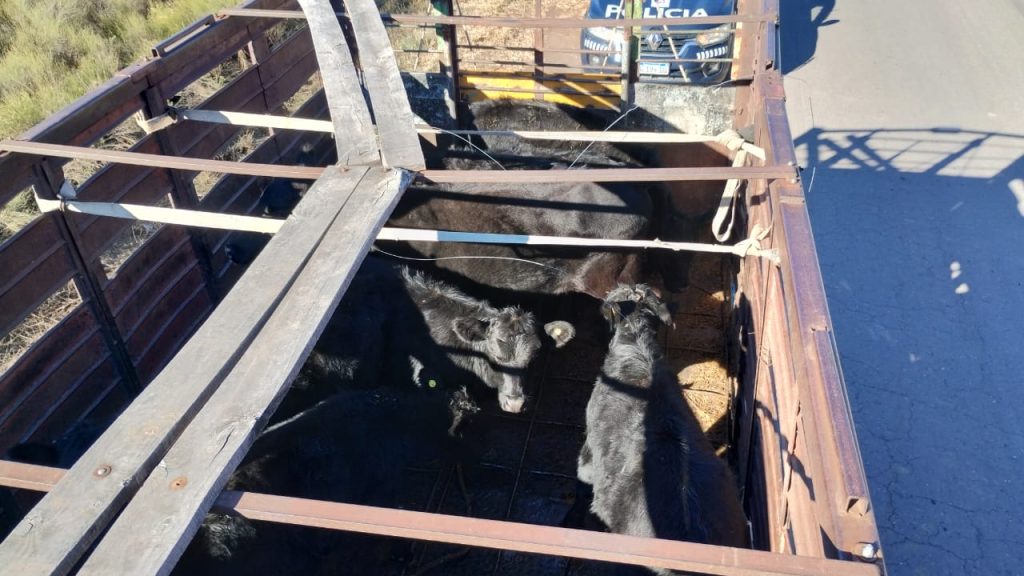 Durante el procedimiento, efectivos policiales detuvieron la marcha de un camión marca Mercedes Benz que transportaba ocho animales bovinos: una vaquillona de pelaje negro tapado y siete terneros del mismo pelaje, todos orejanos, con señal y marca a fuego. Aunque el conductor presentó documentación que, en principio, respaldaba el traslado, ante ciertas inconsistencias, se dio intervención a la Oficina Fiscal.