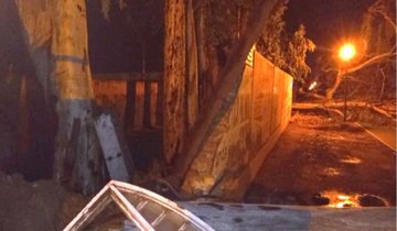 Los árboles -de más de cincuenta años- y cuyos troncos cuentan entre 2 a 4 metros de diámetro fueron “arrancados de raíz” por la fuerza del viento y se desplomaron sobre la avenida Del Libertador provocando la destrucción de parte del cierre perimetral del estadio. Además, el techo de chapa del buffet del club, voló varios metros y cayó en el medio de la avenida, más los cortes del tendido eléctrico sobre la arteria, informó el Sitio Digital “La Jarillera”.