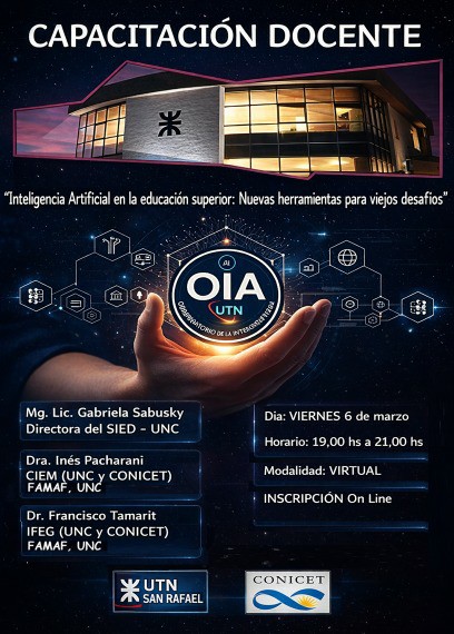 La Universidad Tecnológica Nacional, a través de su Facultad Regional San Rafael, pondrá en marcha una capacitación orientada a docentes universitarios con el eje puesto en la inteligencia artificial (IA) y su aplicación en el ámbito académico. La iniciativa surge en un contexto de transformación profunda de los modos de enseñar, aprender e investigar, atravesados por herramientas que avanzan a un ritmo vertiginoso.