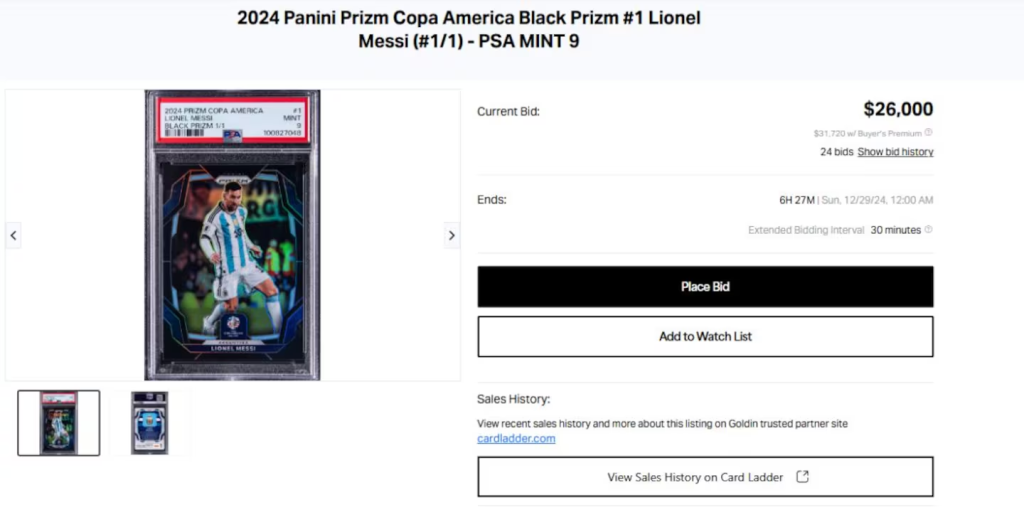 Allí, se podía ver a Lionel Messi con la camiseta albiceleste en su edición anterior, con la que ganaron el Mundial Qatar 2022. “Estas cartas simplemente no vienen a la venta muy a menudo y cuando las venden, cuando las compran, están sacadas de los años para esos verdaderos coleccionistas de él”, señalaron.