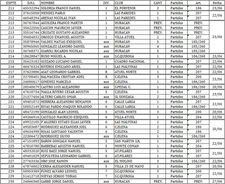 Este miércoles el Honorable Tribunal de Penas de la Liga Sanrafaelina de Fútbol oficializó las diferentes sanciones de los jugadores que fueron expulsados durante la 5ª fecha del Torneo Apertura de Primera “A” y “B” donde sobresalen las sanciones preventivas a jugadores del Club Huracán.