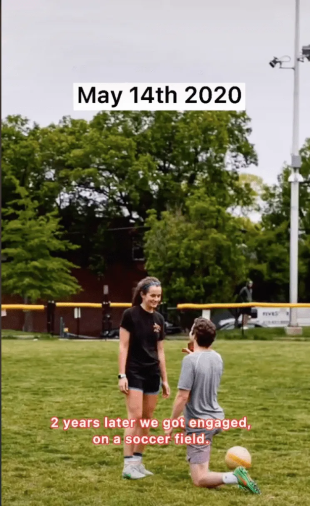 «Le dije a mi mejor amiga que me gustaba y pasó esto», tituló el médico, en un clip que ya tiene más de 7 millones de visualizaciones. En el video, el médico aprovechó el momento para confesarle su amor a su futura esposa: «Desde la primera vez que te conocí, has sido la mejor amiga que he tenido. Eres fuerte, segura, graciosa e inteligente. Y la mejor jugadora de fútbol que he conocido», lanzó.