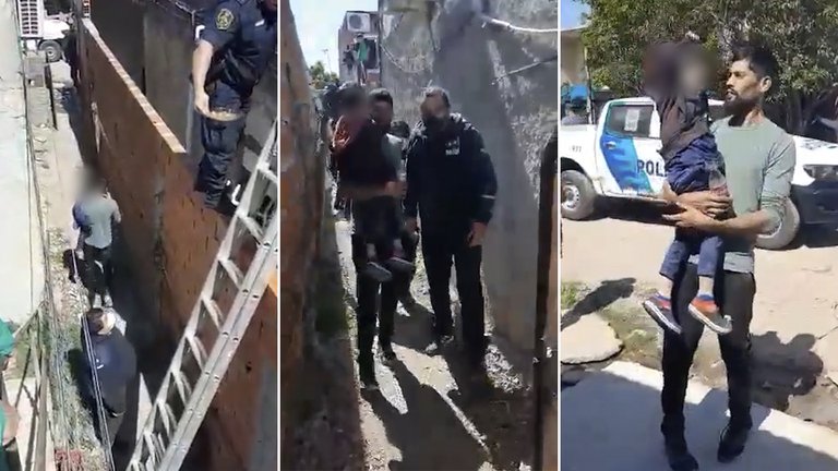 Con una escalera apoyada sobre una paredón de ladrillos, tres policías de la Bonaerense lograron rescatar a un nene de 5 años que había quedado encerrado en su casa. “Lloraba y estaba desesperado”, confiaron a este medio fuentes de la investigación. El padre quedó acusado por abandono de persona, pero no está detenido.