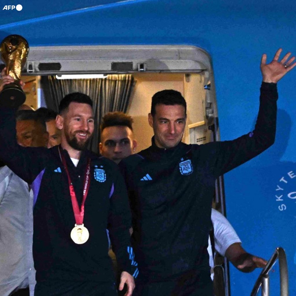 Tras consagrarse campeona del mundo, la selección argentina ya está en el país. Y en el aeropuerto internacional de Ezeiza hubo una recepción especial. Entre las sorpresas, hubo una alfombra roja y Aerolíneas Argentinas tiene preparada una nueva estrella (la tercera) para agregar al ploteado del avión Airbus 330-200 que luce en su exterior los colores y las imágenes de los futbolistas. Además, el grupo musical La Mosca dio un show en vivo. Por supuesto, la popular banda liderada por Guillermo Novellis tocará la adaptación de su tema “Muchachos”, que tuvo una reversión con la letra de Fernando Romero, se llamó “Muchachos, ahora nos volvimos a ilusionar” y se convirtió en el himno que acompañó a la Scaloneta durante todo el Mundial Qatar 2022.