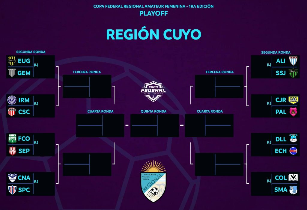 En esta Región de Cuyo, la llave 4º será entre Cuadro Nacional y el Sportivo Pedal Club, mientras que El Porvenir se verá las caras ante Ferro Carril Oeste de General Alvear en la llave 3º los ganadores se enfrentarán en la siguiente instancia.