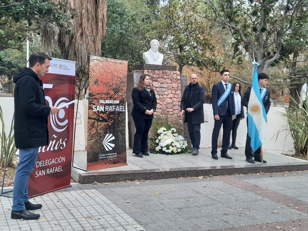 Es por eso que ayer lunes, desarrollaron un acto en la plaza Manuel Belgrano en el barrio Sat, a fin de recordar a ese importante hombre de nuestra historia y esos ideales a los que hizo referencia Gili. Acompañó la Banda de Música de la Policía de Mendoza. “Se trata de un homenaje a su legado, ya que cada profesional en Ciencias Económicas tenemos que pensar un poquito en él, en esta actualidad en la que vivimos tan compleja”, resaltó.