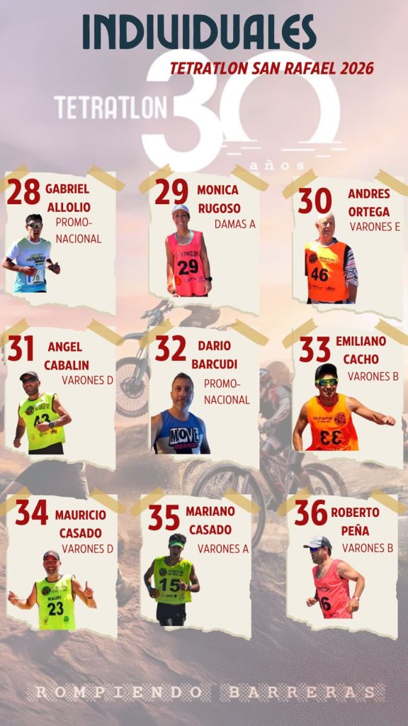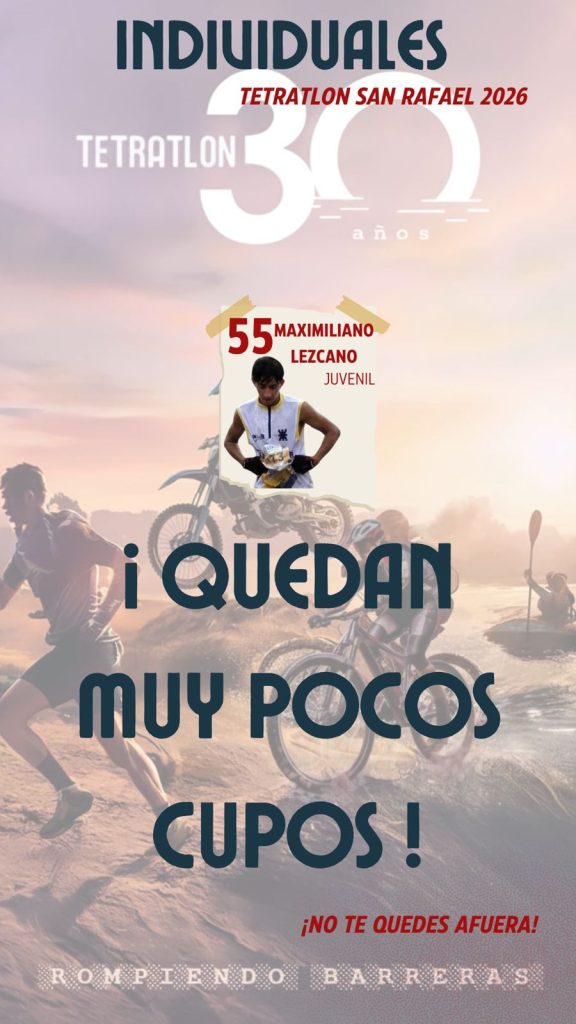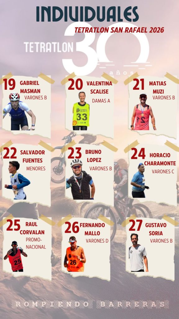 El Tetratlón San Rafael en El Nihuil se realizará el domingo 25 de enero de 2026 en El Nihuil, celebrando su 30° aniversario, y van quedando definidos los participantes que estarán en el evento.