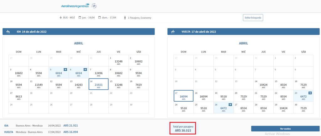 Diario San Rafael consultó sobre una fecha “random” y otra de “Semana Santa” y los valores se mantienen igualados entre el Aeroparque Jorge Newbery y las cabeceras mendocinas.