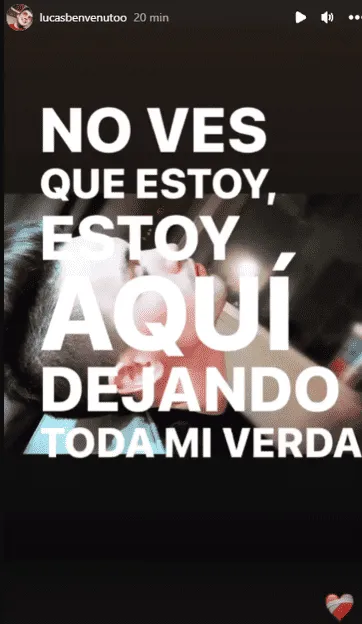 Más tarde, Lucas Benvenuto subió otra historia donde volvió a compartir la foto de un posteo que tiene fijado en su perfil. En esa publicación, el joven le habla al niño que una vez fue.