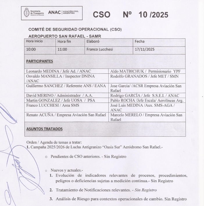 Lo anterior quedó expuesto en un documento firmado por la Administración Nacional de Aviación Civil (ANAC) y a través del Comité de Seguridad Operacional del Sistema de Lucha Antigranizo, mediante la resolución N° 10/2025.