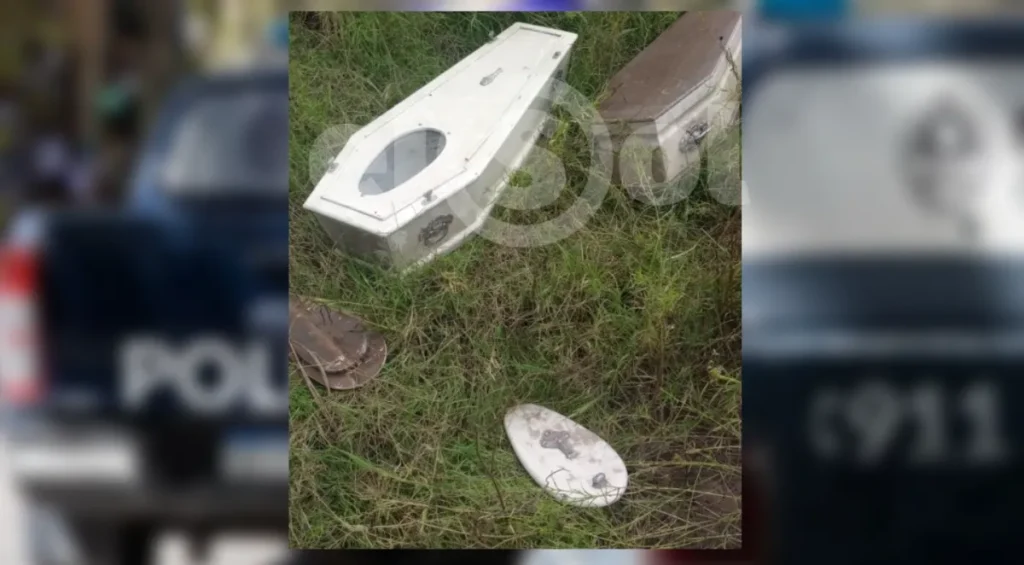 El hecho se conoció tras un llamado al 911 que alertó sobre la presencia de los féretros en un terreno baldío. Al arribar, efectivos de la jurisdicción se encontraron con la escena y confirmaron la existencia en el lugar.