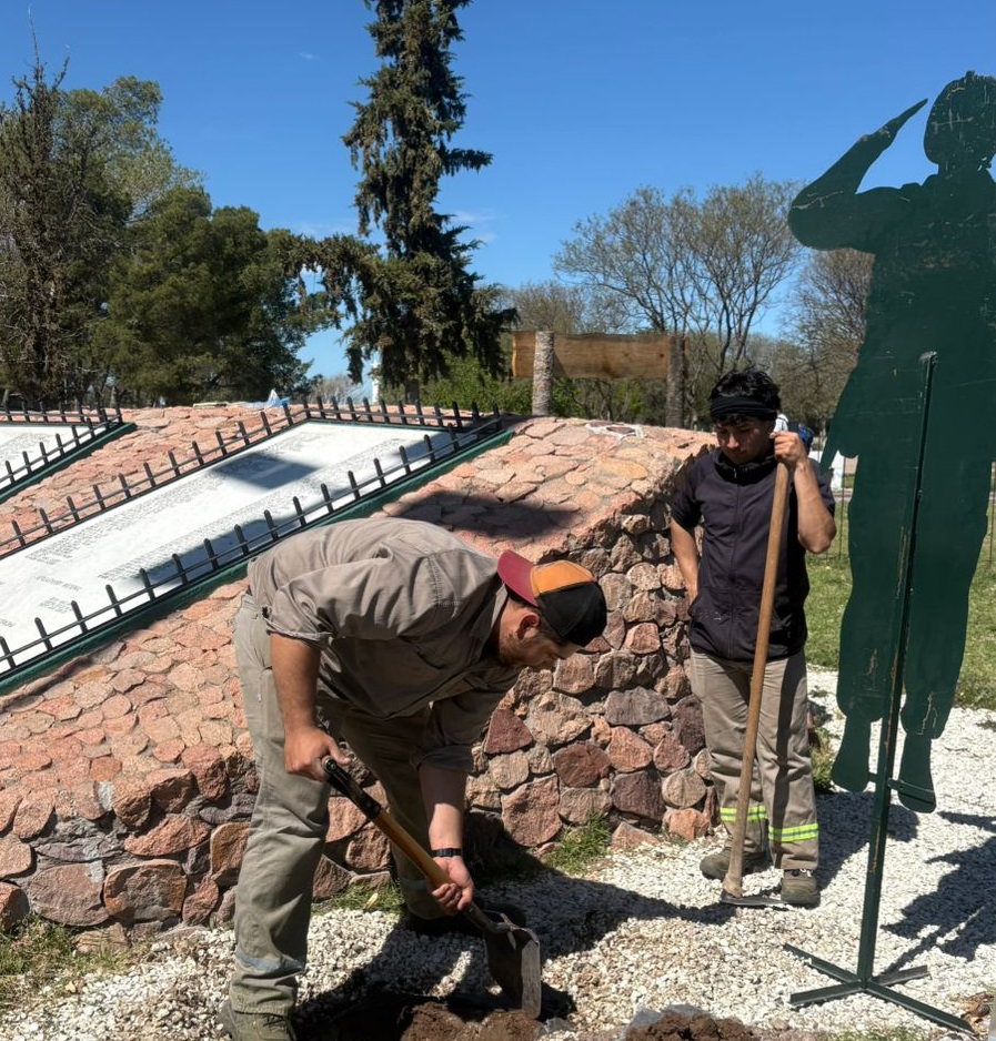 En estos días, la agrupación llevó adelante mejoras y embellecimiento en el monumento a los caídos en Malvinas, incorporando nueva cartelería y figuras realizadas por sus propios integrantes.