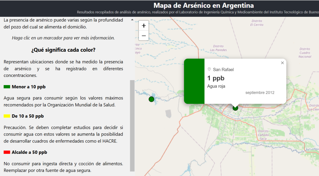 El Instituto Tecnológico de Buenos Aires (ITBA) anunció a fines de 2024 el relanzamiento de su Mapa de Arsénico, una herramienta esencial para monitorear la presencia de arsénico en el agua de diversas regiones del país.