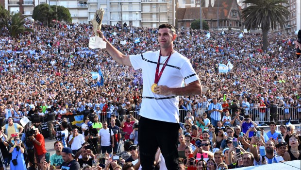 Marcha la caravana por la costa hacia el centro de la ciudad. Empezó la desconcentración y son miles y miles los marplatenses que caminan con camisetas, banderas y todo tipo de ornamento celeste y blanco. Todavía hay caras de alegría y sonrisas: sólo pasaron uno minutos desde que pudieron ver en vivo y en directo al Dibu Martínez, el nuevo héroe marplatense y argentino.»