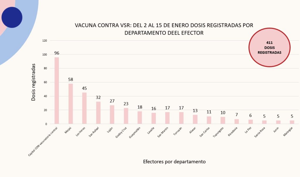 El propio Ministro de Salud de Mendoza, Rodolfo Moreno, anunció que “Del 2 al 15 de enero, más de cuatrocientas mendocinas entre las 32 y 36 semanas de gestación se vacunaron contra el virus sincicial respiratorio. Se trata de un gran logro porque la vacuna protege a los bebés por nacer contra la bronquiolitis hasta el sexto mes de vida”