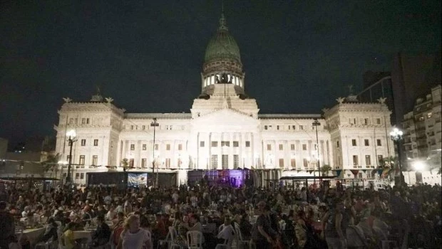 «Ninguna familia sin Navidad» fue la consigna de la cena, una iniciativa que comenzó a llevarse a cabo en 2016 todos los 24 de diciembre en la Plaza del Congreso, en el centro porteño, organizada por movimientos populares.