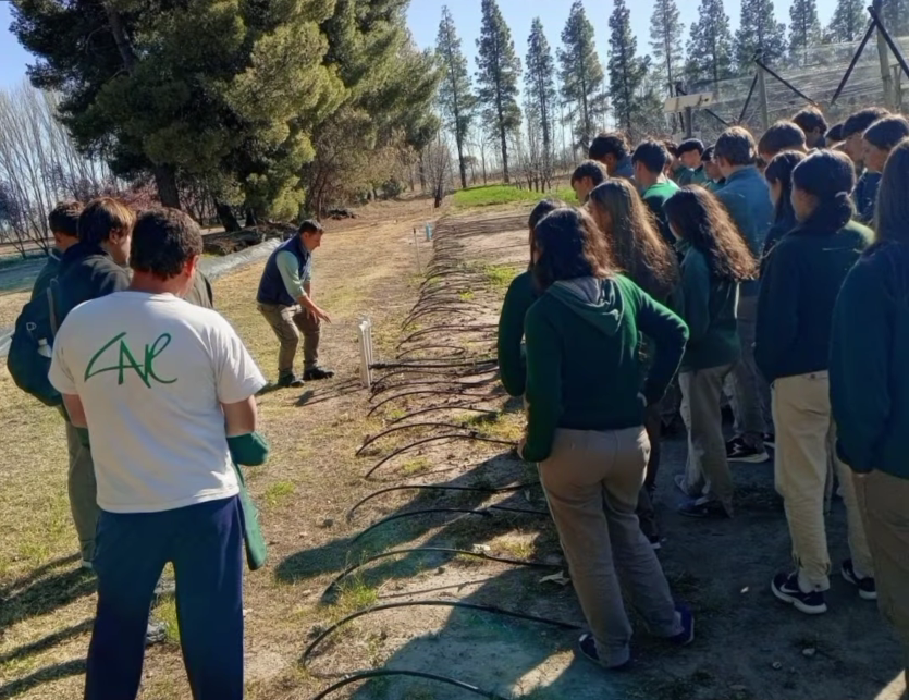 Entre las actividades desarrolladas se destacaron la capacitación en el Área de Riego, a cargo del ingeniero Claudio Giardina; la visita al Laboratorio de Sanidad Vegetal, junto a la doctora Viviana Seitz; y una recorrida práctica por los sectores de fruticultura y viñedos, donde los jóvenes pudieron observar de primera mano las dinámicas de producción regional.