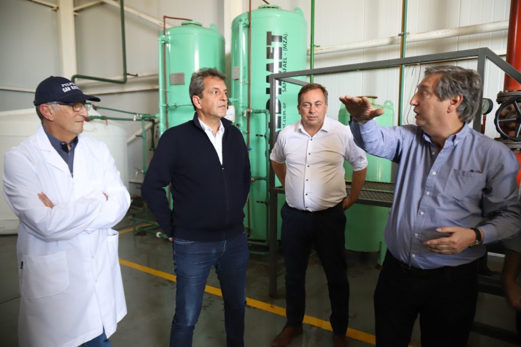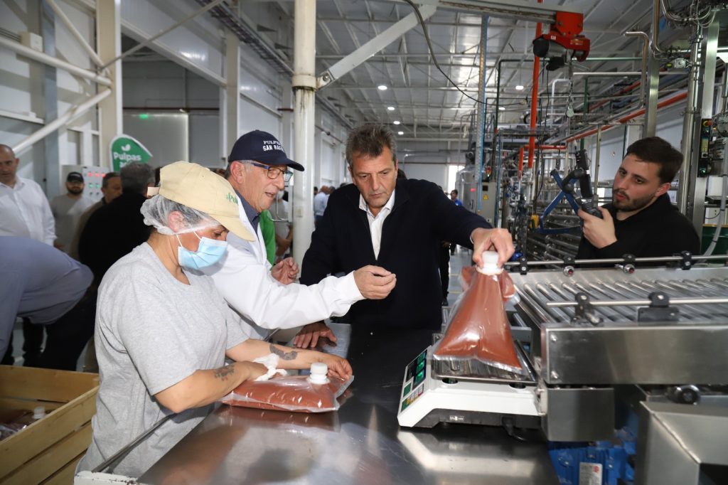 La última actividad de Sergio Massa en San Rafael fue en la pulpera municipal, con la que quedó deslumbrado, no solo por su capacidad instalada sino por los productos que degustó.