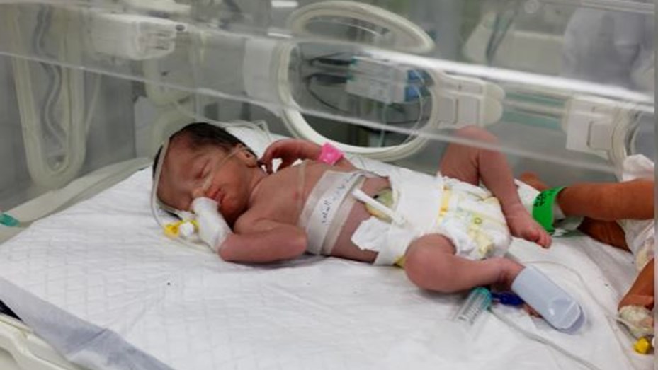 La bebé fue colocada en una incubadora de un hospital de Ráfah junto a otro bebé, con las palabras «El bebé de la mártir Sabreen Al-Sakani» escritas con cinta adhesiva sobre su pecho.