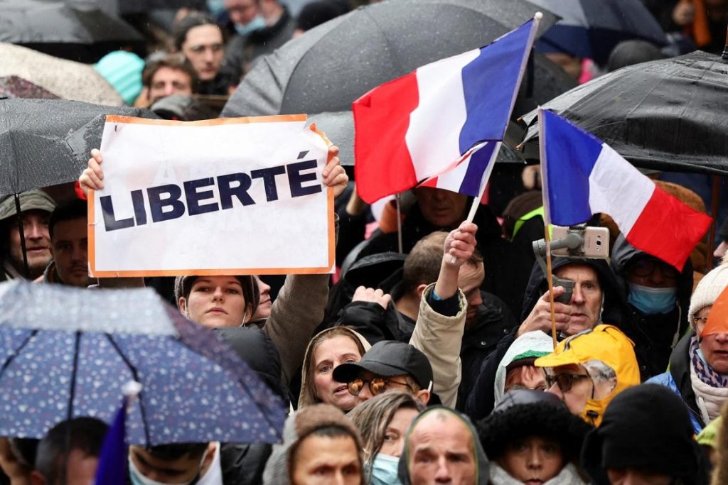 Decenas de miles de personas, 105.200 según el Ministerio del Interior, salieron este sábado a las calles en Francia para protestar por las medidas de Emmanuel Macron para poner presión sobre los no vacunados.