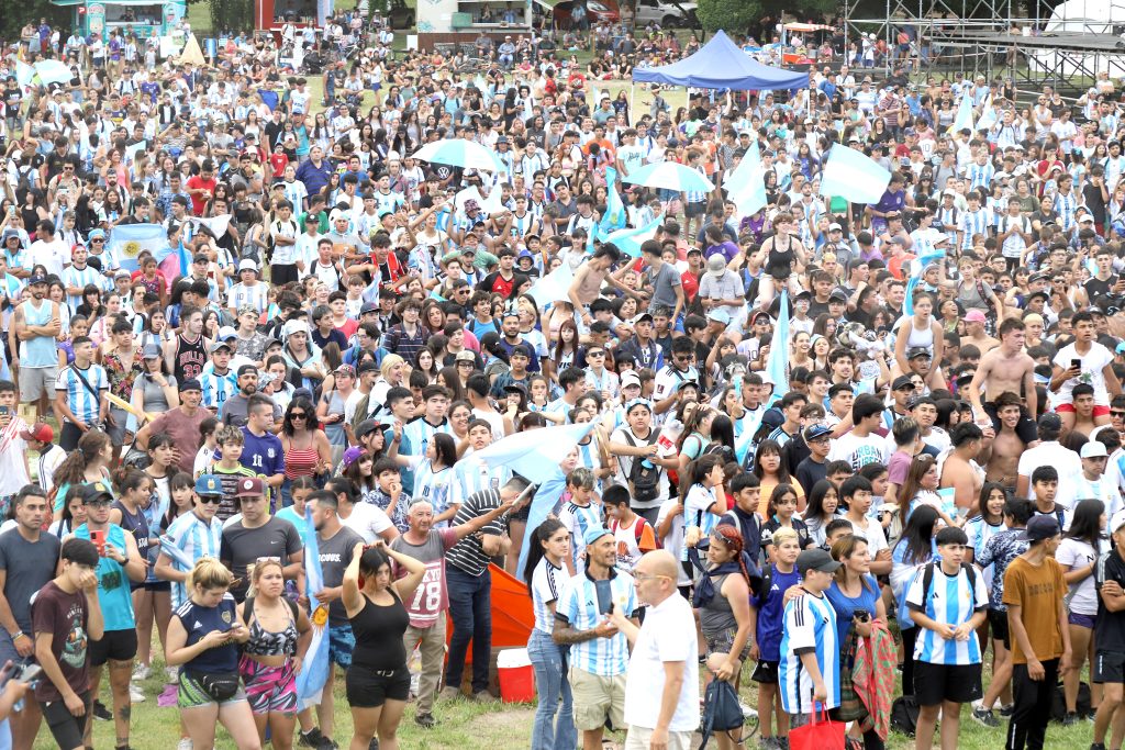 A través de la pantalla gigante instalada en el predio detrás del teatro griego Chacho Santa Cruz, miles de jóvenes y familias siguieron el gran triunfo del equipo de Lionel Scaloni ante Polonia, y luego celebraron la clasificación a octavos de final, donde ya tenemos rival: Australia.