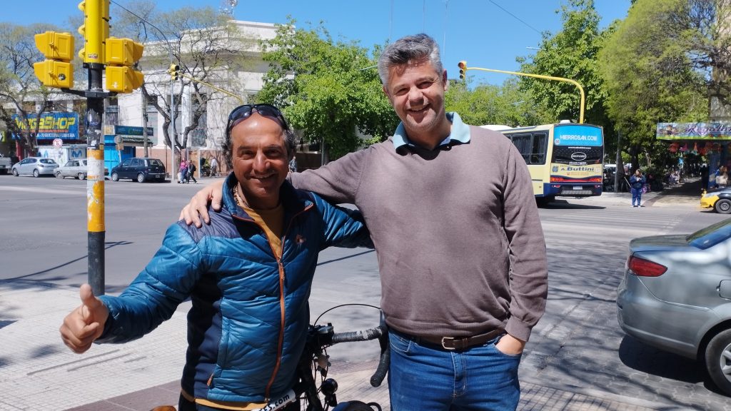 Sin embargo, no todo es sencillo en la vida de este viajero. “No siempre es posible viajar en bicicleta”, admitió. En Argentina, por ejemplo, tuvo que recorrer una parte en auto debido a las limitaciones de tiempo impuestas por su visa. “Pedaleé más de mil kilómetros en Argentina, pero me quedaban solo 40 días de visa y necesitaba llegar a Bariloche y Tierra del Fuego. No podía hacerlo todo en bicicleta, así que hice dedo, y fue así como conocí a Alfredo”. Alfredo Serra es un sanrafaelino que le dio un aventón y hospedaje en una cabaña en Valle Grande, y desde entonces han formado una amistad que muestra como los lazos humanos pueden surgir en los momentos más inesperados. “Éramos desconocidos, pero ahora somos amigos”, recordó Mohammad con gratitud.