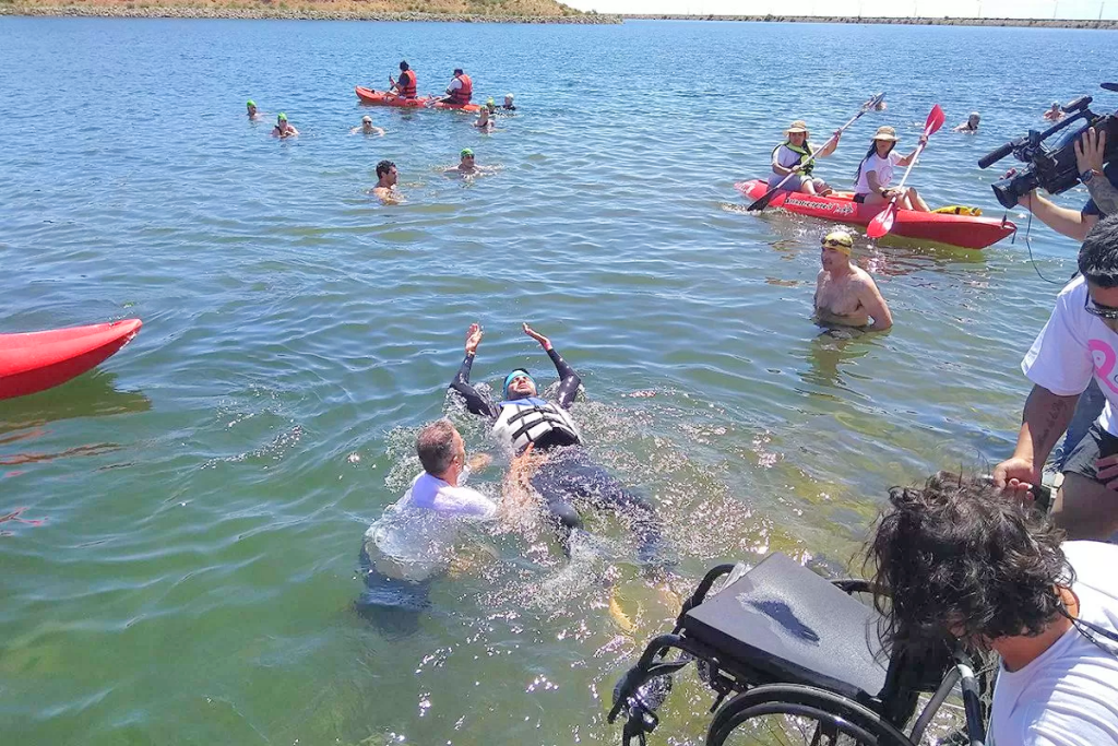 En el marco de las actividades que el Municipio de San Rafael impulsa por el Día Internacional de las Personas con Discapacidad, se destaca la visita de Sirur Maluf, un deportista con discapacidad motriz que realizó un nado de aguas abiertas en el lago de Los Reyunos.