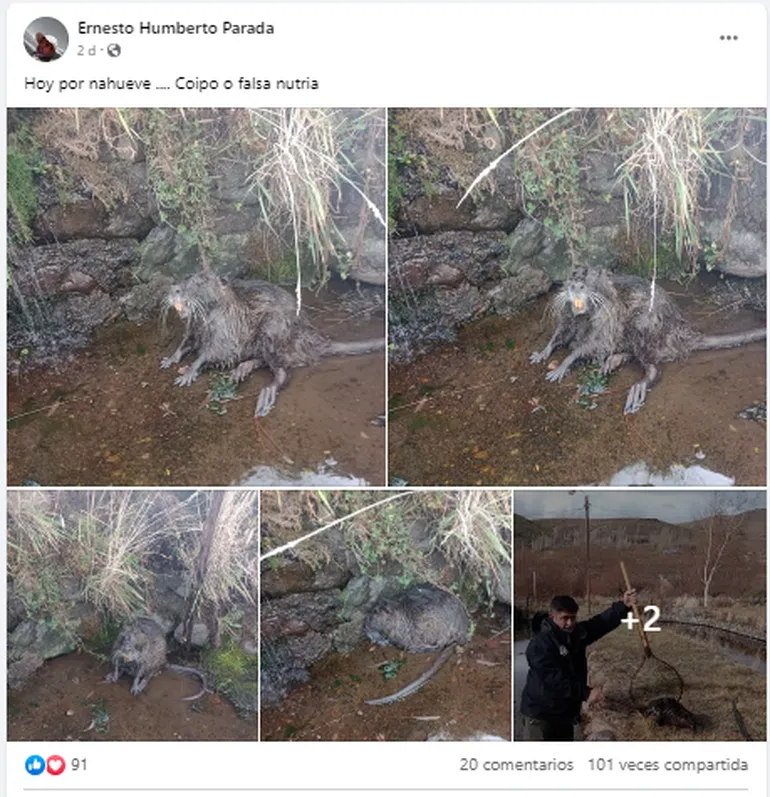 «El animal no es autóctono, de la zona», comentó Willy Parada. Le dicen «falsa trucha», indicó, pero «es un coipo».