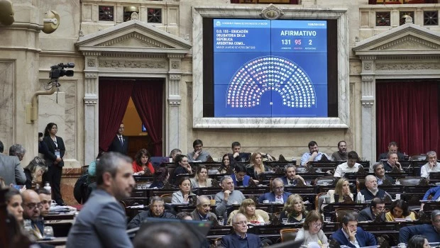 La Cámara de Diputados aprobó y giró al Senado, con el voto favorable de bloques de la UCR, Encuentro Federal, Coalición Cívica y Unión por la Patria, el proyecto de financiamiento para las Universidades Nacionales, que es rechazado por el oficialismo con el argumento que aumenta el déficit fiscal.