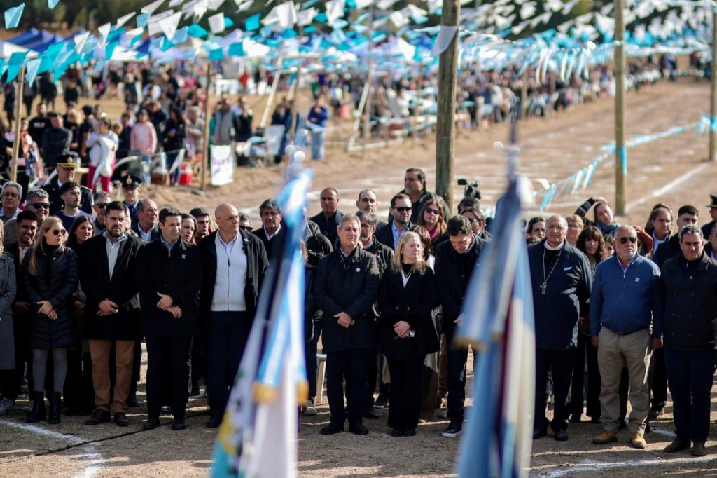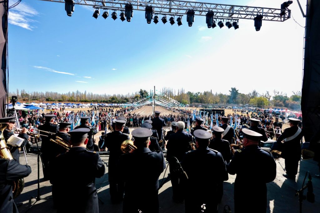 El evento se realizó acompañado por decenas de banderas de institución sanrafaelinas y la interpretación del Himno Nacional a cargo de la Banda de Música de la Policía Zona Sur.