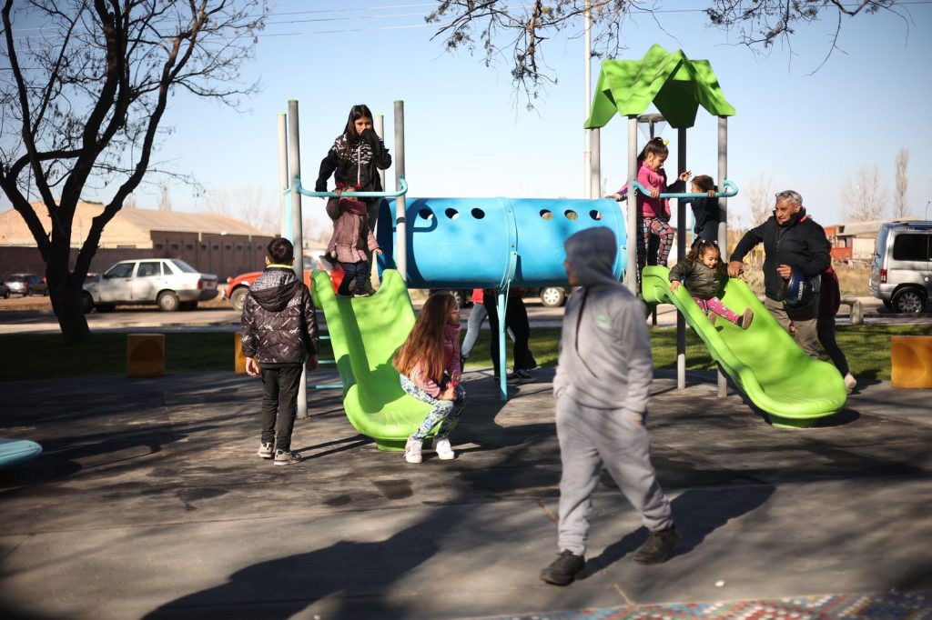 El flamante punto de encuentro está situado entre las calles Lisandro de la Torre, Graín, Carlos Washington Lencinas y Manuel Quintana, cuenta con amplia superficie verde, luces led, juegos infantiles y agregados estéticos imperdibles: un impecable busto de Julio Balloffet y un sendero con rayuela incluida elaborado a base de tapitas de gaseosa recicladas.