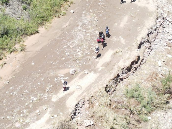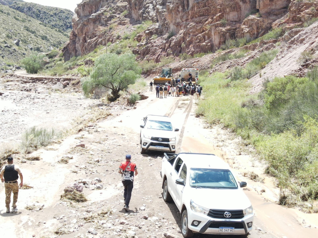 Defensa Civil, junto a efectivos de la Patrulla de Rescate, comenzaron a realizar sobrevuelos en el helicóptero en la zona del Cañón una vez que las condiciones climáticas lo permitieron. Durante estas tareas, que aún continúan, ya fueron evacuadas dos personas que se encontraban en buen estado, mientras que un vehículo atascado por el barro fue localizado y se inició la búsqueda de otros posibles ocupantes de un vehículo abandonado.