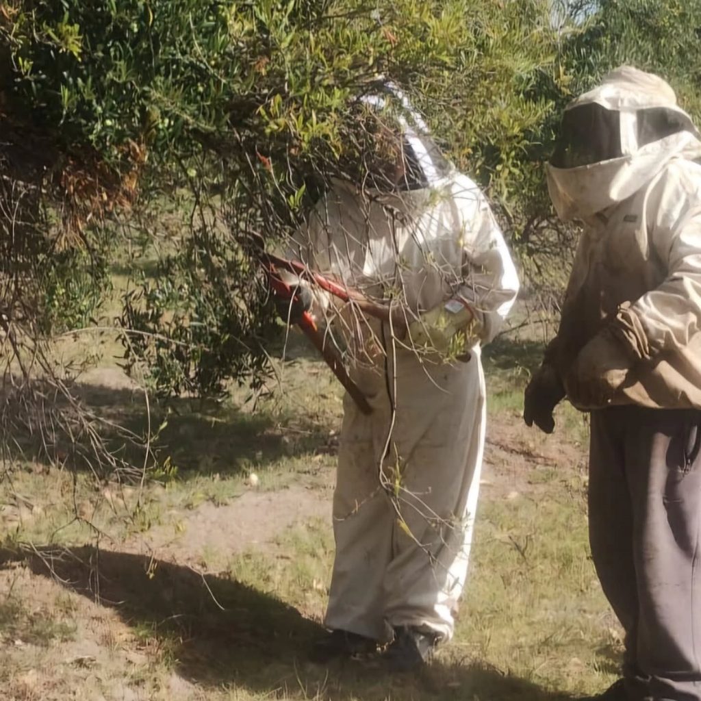 Con paciencia y herramientas específicas, retiraron y trasladaron el enjambre de forma segura, evitando cualquier riesgo de picaduras o daños a la colonia.