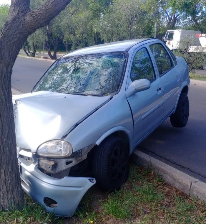 Un siniestro vial más se produjo hace minutos en nuestra ciudad. En este caso, un Chevrolet Corsa que se desplazaba por avenida Rivadavia cuando, cerca de la esquina con Deán Funes, su conductor perdió el dominio del mismo, que salió de la cinta asfáltica y terminó impactando contra uno de los árboles que se encuentran en el bulevar de la zona.