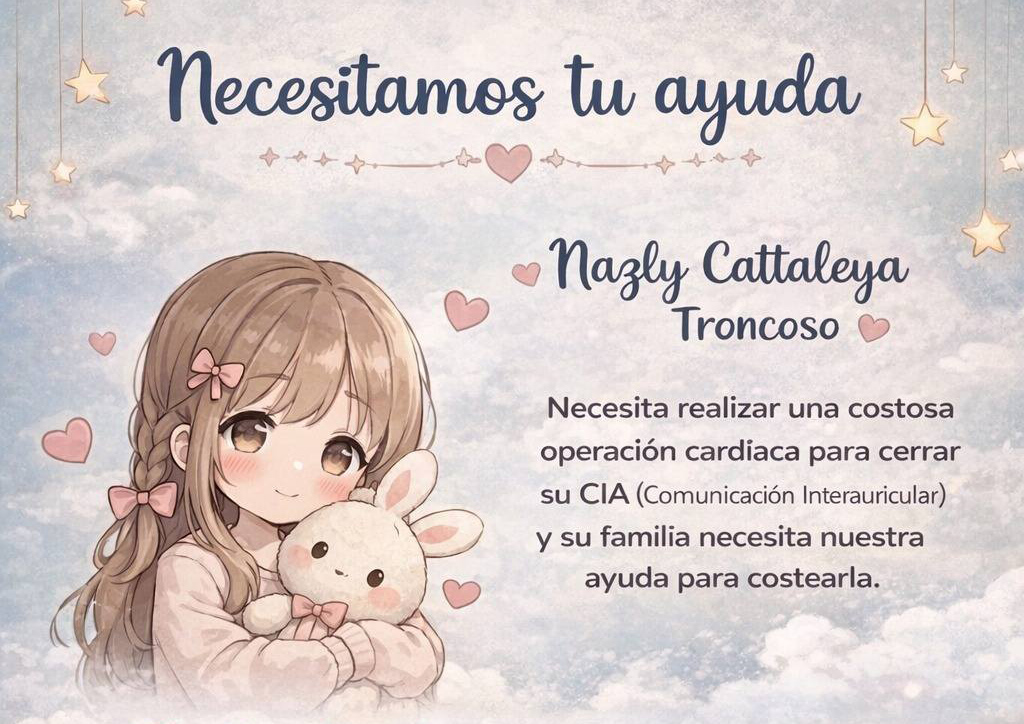 Se trata de Nazly Cattaleya Troncoso, quien fue diagnosticada con una cardiopatía congénita del tipo comunicación interauricular (CIA). Según indicaron los profesionales del Hospital Pediátrico “Dr. Humberto Notti” de Mendoza, la pequeña debe someterse a un cateterismo terapéutico para cerrar esta afección.