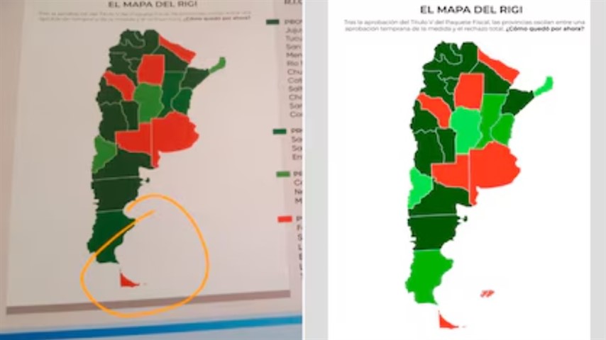 “En uno de los mapas empleados en esa ocasión, que buscaba mostrar las provincias que adhirieron o no al RIGI, se constató luego que se trataba de una versión incompleta en la cual, por una falla involuntaria, no figuraban las Islas Malvinas. Esto no fue advertido en el momento por los expositores, ya que estaban de espaldas a la pantalla. Por otro lado, las Islas Malvinas sí figuraban en un segundo mapa que también fue exhibido en la misma jornada. Sin perjuicio del error involuntario, que fue subsanado de inmediato enviando la versión correcta por vía electrónica a los concurrentes, lamentamos que haya sido usado para sacar conclusiones falsas o hacer especulaciones políticas de bajo nivel sobre la Causa Malvinas, que debiera unirnos a todos los argentinos”, concluyeron.