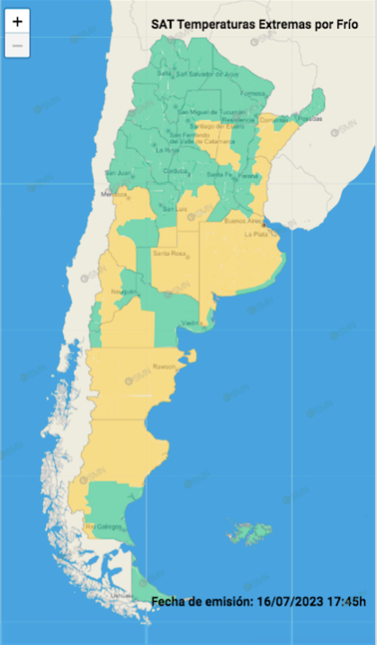 De acuerdo con lo anunciado por el Servicio Meteorológico Nacional (SMN), las zonas afectadas por temperaturas extremas por frío son: el Valle de Uco, los departamentos del Este, Norte y Sur provincial.