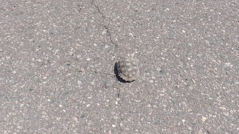 Rescataron una tortuga que estaba en plena ruta de Valle Grande y evitaron que fuera atropellada