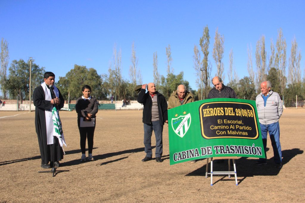 El acto contó con la presencia del padre Oscar Barraza quien realizó la bendición del cartel identificatorio, se entonaron las estrofas del Himno Nacional Argentino para realizar el descubrimiento del nombre de las cabinas, estando presentes Norma Santarrosa, Francisco Muñoz, Alfredo y Gabriel Espinoza, sumando a Delfina Juárez, Jacinto Brocal, Jacinto Asencio y Carlos Sarmiento, personas ligadas al club que por razones particulares no pudieron asistir.