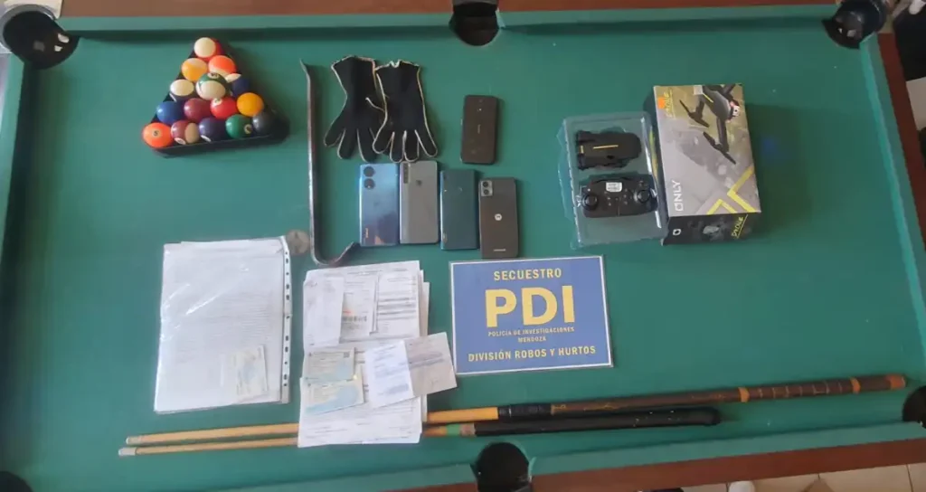En el lugar había un Rifle Mauser, diez celulares, dos relojes, tres vehículos de distintos modelos, una tablet, dos inflables con sus respectivos motores, una bicicleta, cinco ruedas, puertas de autos, una mesa de pool, una PlayStation 4, televisores, guantes, ropa, un millón y medio de pesos.